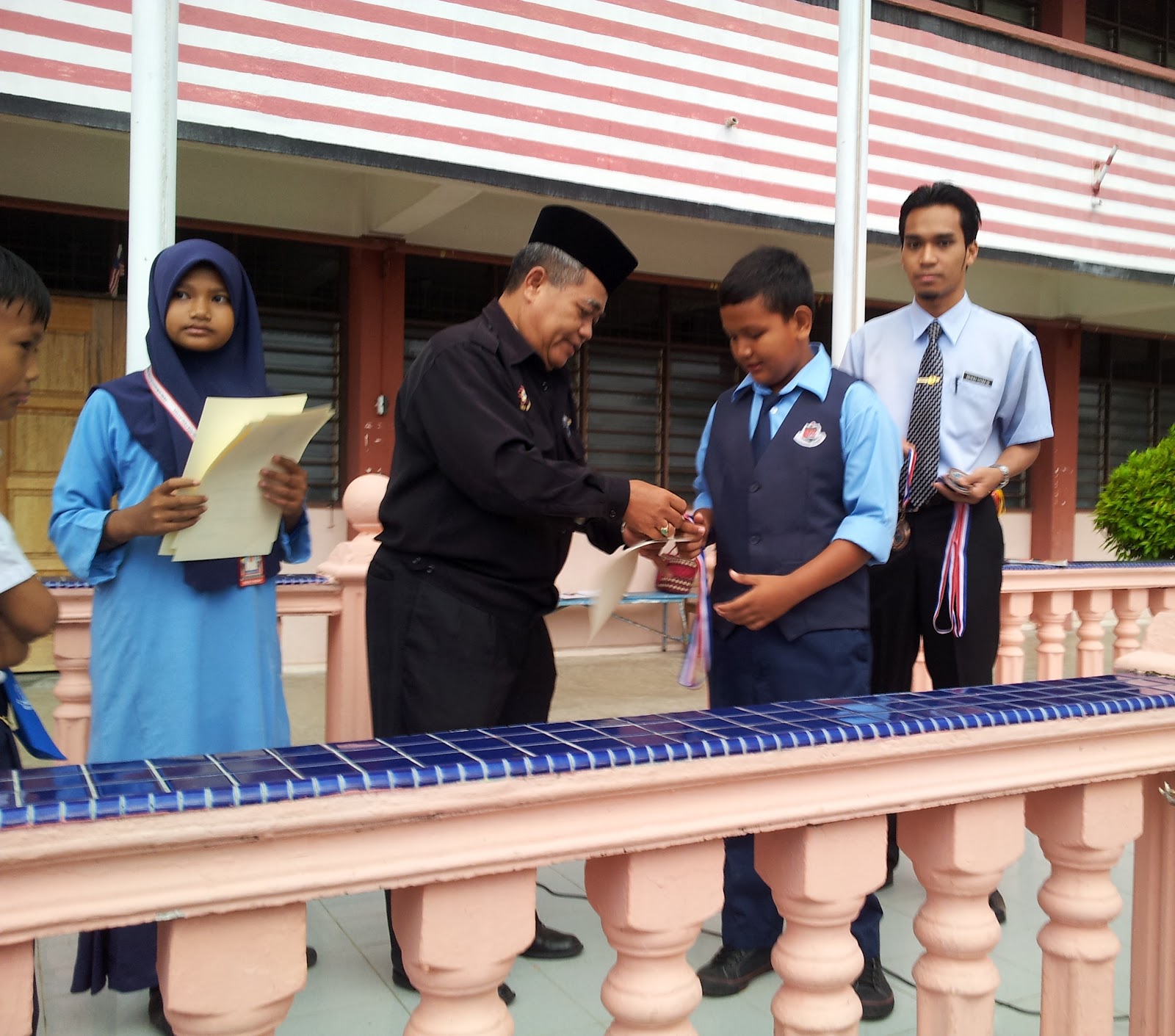 Penyampaian pingat dan sijil kepada pasukan sepak takraw disempurnakan oleh Tn. Hj. Mohd. Nasib b. Hamzah, Guru Besar SK Sempang |
